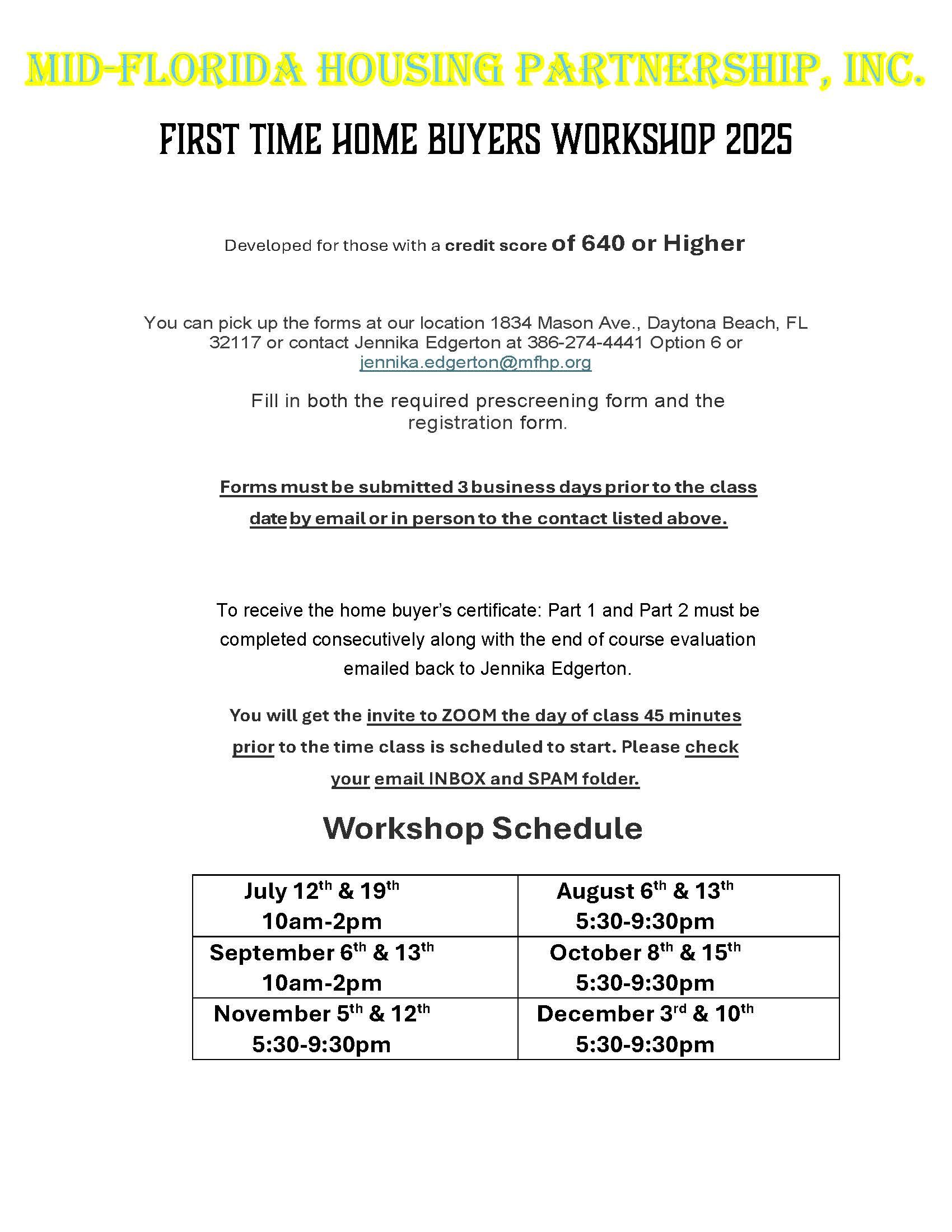 First-Time Homebuyer Workshops (July–December 2025)