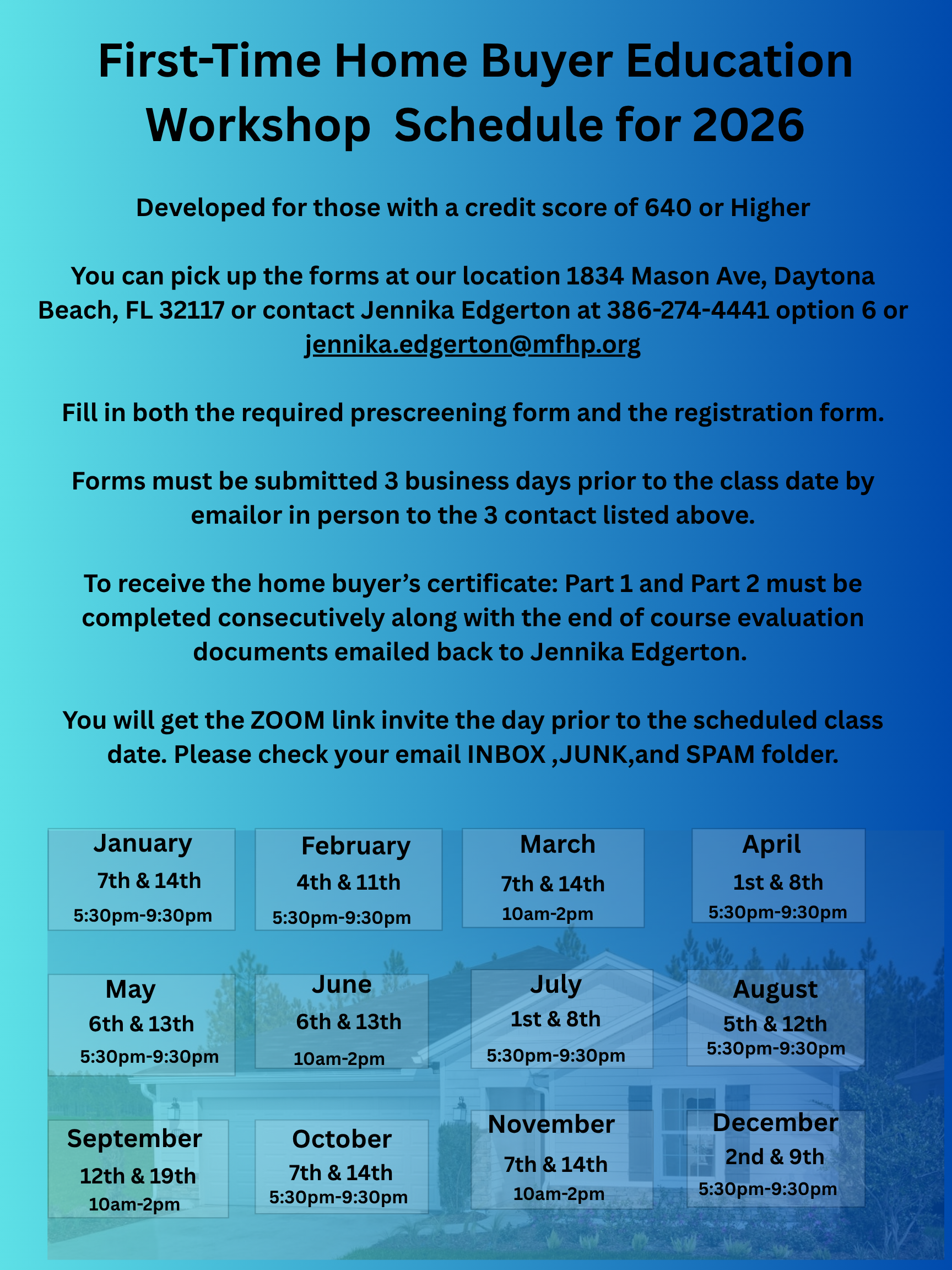 FIRST-TIME HOME BUYER EDUCATION WORKSHOP SCHEDULE FOR 2026